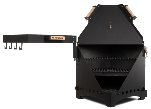 KivaKube™ is a revolutionary portable BBQ that functions as a grill, smoker, oven, stove, and fireplace, using charcoal, wood, gas, or pellets as a fuel source. While other BBQs can claim some of these features, only KivaKube™ offers them all in one compact unit.