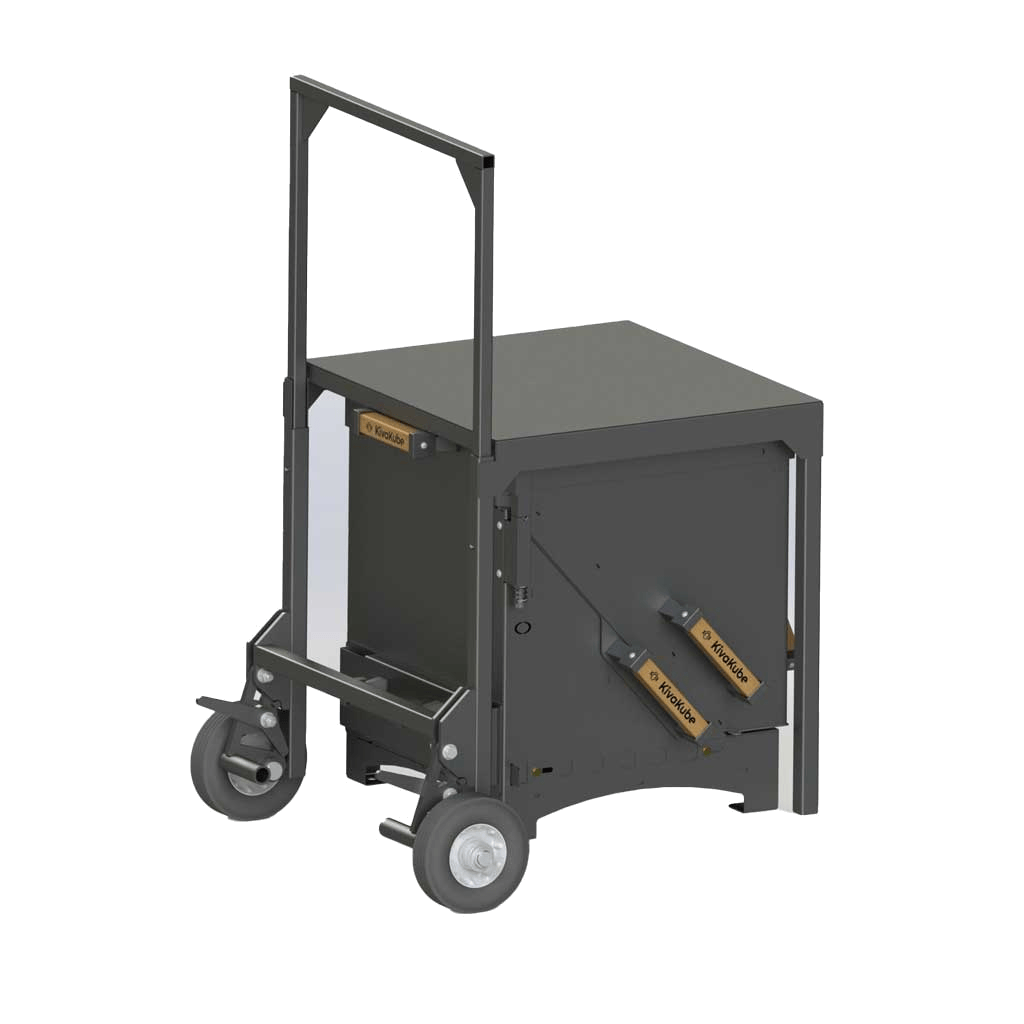 It features heavy duty retractable wheels that allow you to easily wheel around your KivaKube™. The KivaStand™ securely mounts your KivaKube™ BBQ into place, giving you a solid, elevated platform that’s perfect for backyard setups, tailgates, patios, or campsites.
